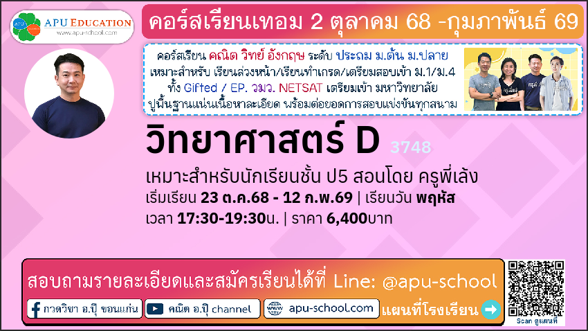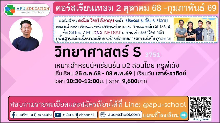 apu-online วิทยาศาสตร์ ม.3 เข้มข้น พร้อมตะลุยโจทย์เตรียมสอบเข้า